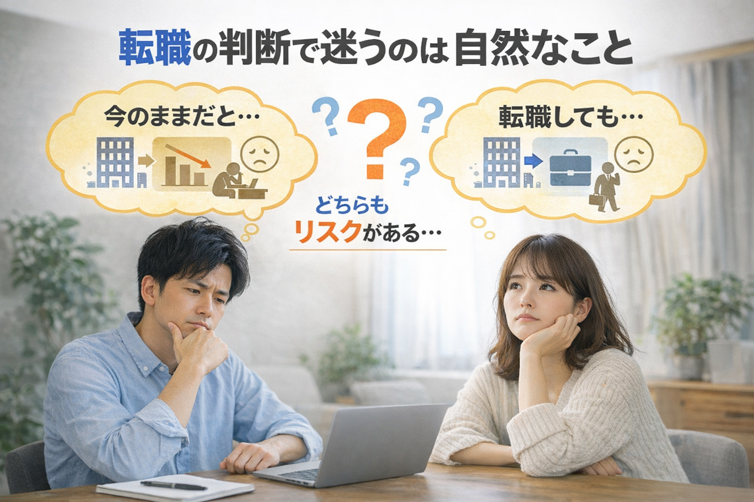 転職の判断で迷うのは、現職に残るリスクと、転職するリスクの両方が見えているからです。